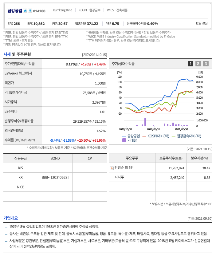 | 금강공업 | 8170원 | 8291원 | 8276원 | 8259원 |