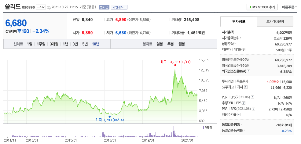 | 쏠리드 | 6,680원 | 6,992원 | 6,971원 | 6,906원 |