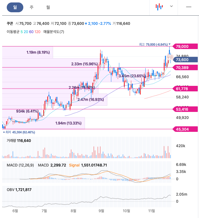 | 쿠콘 | 72,400원 | 69,184원 | 68,642원 | 70,124원 |