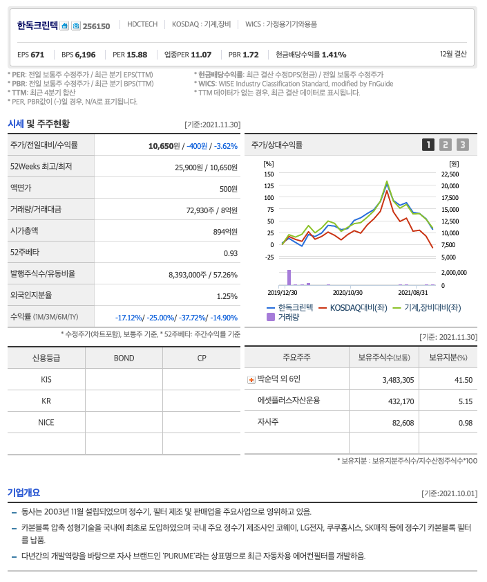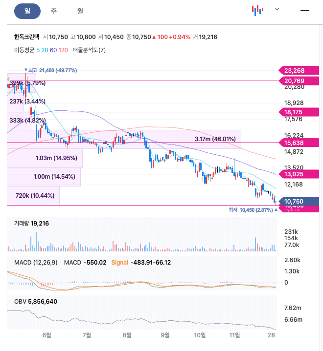 | 한독크린텍 | 10,750원 | 12,782원 | 12,584원 | 11,997원 |