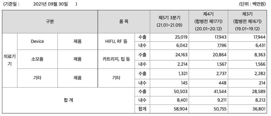 당사는 각국의 인허가 규정에 따라 주요 Device의 MFDS, FDA, CE, MDSAP 등의 인증을 보유하고 있으며, 빠르게 신기술을 적용하는 기술적 유연성과 안정성, 우수한 임상 효과와 더불어 가격 경쟁력을 갖췄다는 점에서 피부미용시장에서 꾸준한 매출 성장세를 보이고 있습니다. 또한, 지속적인 임상연구를 통해 신뢰성 있는 데이터를 확보하고, 국제학회지(SCI급)에 논문을 등재하기 위한 연구를 진행하는 등, 경쟁력과 객관성을 기반으로 한 자료 확보를 위해 노력하고 있습니다.