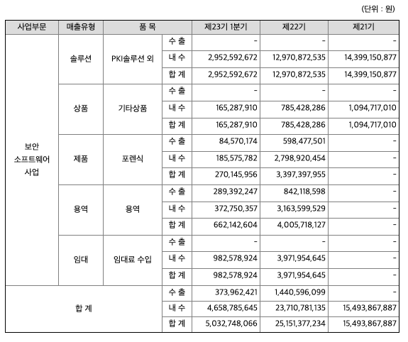 1) 보안 소프트웨어 사업