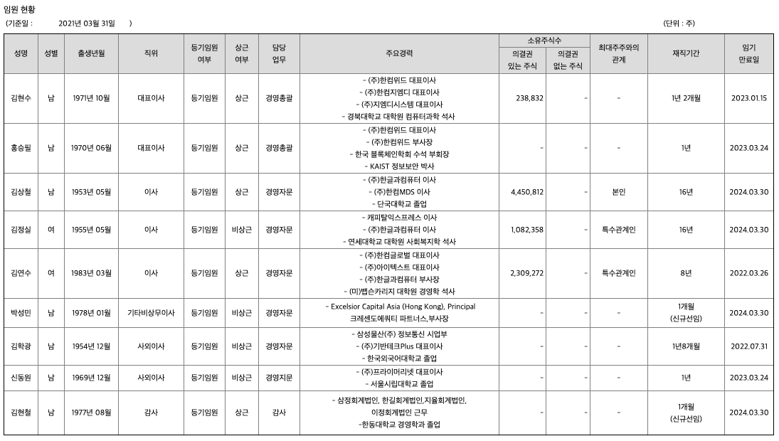 뿐만 아니라 당기중 (주)한컴아카데미 및 HANCOM GMD.INC 미국법인을 설립 및 지분를 투자하여 연결대상 종속법인이 추가되었습니다. 향후 (주)한컴아카데미를 통하여 스마트 러닝 플랫폼을 기반으로 드론 교육을 비롯, 다양한 SW 교육 서비스를 제공하고 HANCOM GMD.INC를 통한 해외 진출을 기대하고 있습니다.