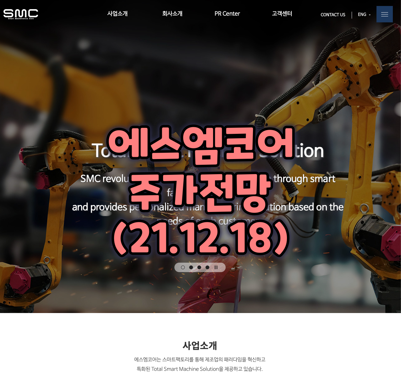 Future Leader of Smart Factory Automation SMC has implemented the very first automation system in Korea, making inroads into worldwide smart factory automation system to realize its business value