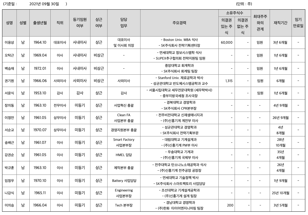 최대주주 및 지분율 (2021년 9월 30일 기준)
