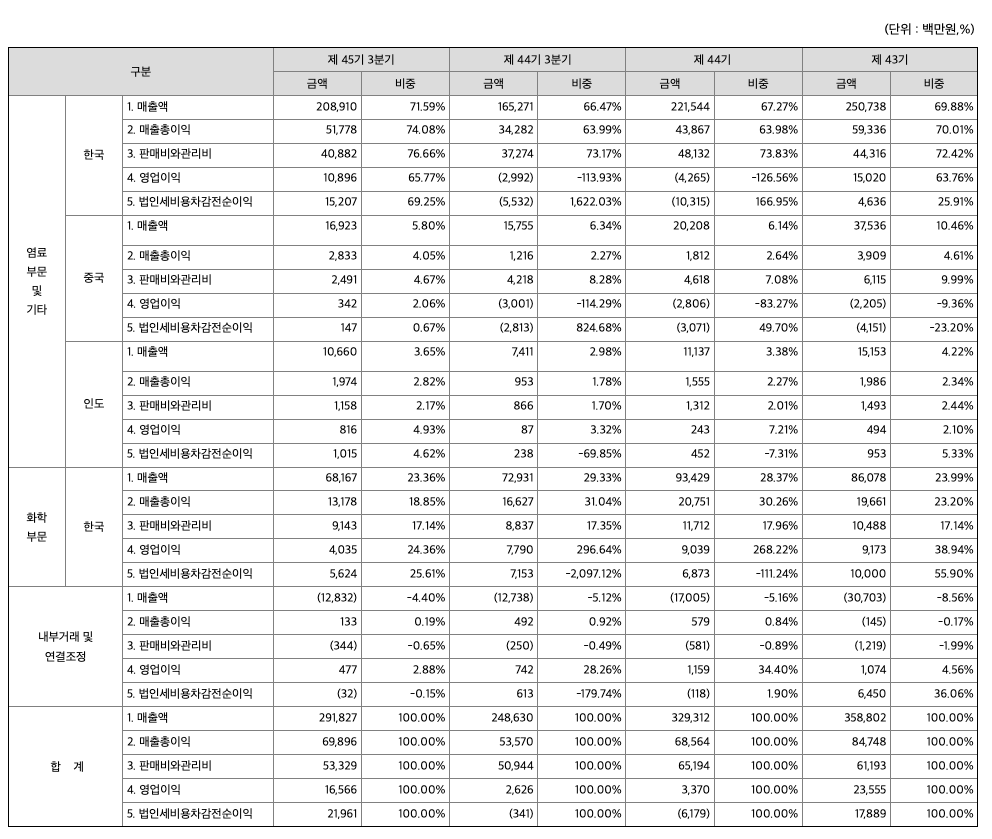1) 염료부문 사업의 개요 - ㈜경인양행, KSC, KLC