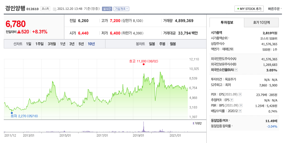 | 경인양행 | 6,800원 | 6,858원 | 6,952원 | 7,010원 |
