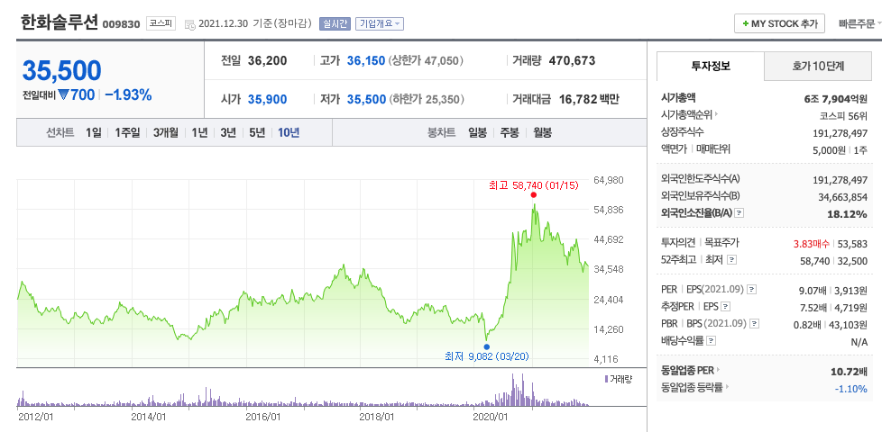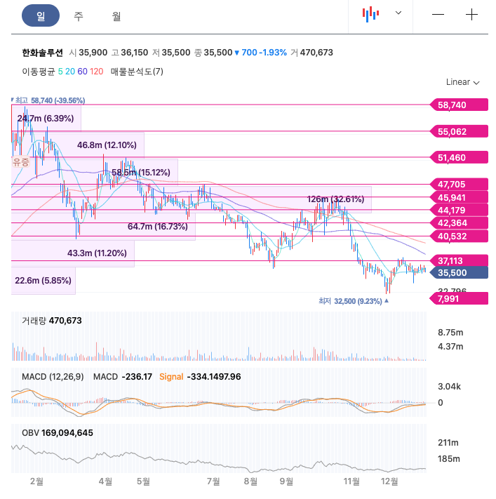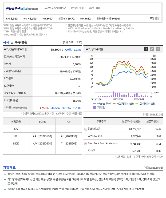 | 한화솔루션 | 35,500원 | 39,085원 | 39,752원 | 38,939원 |