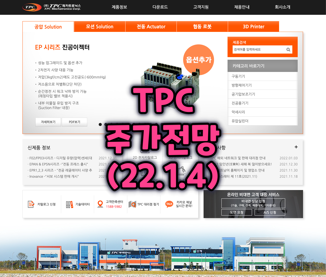공압기기전문기업, 실린더, 밸브, 청정화기기, 진공, 피팅, 직교로봇, 리니어로봇, 3D프린터, 협동로봇 취급