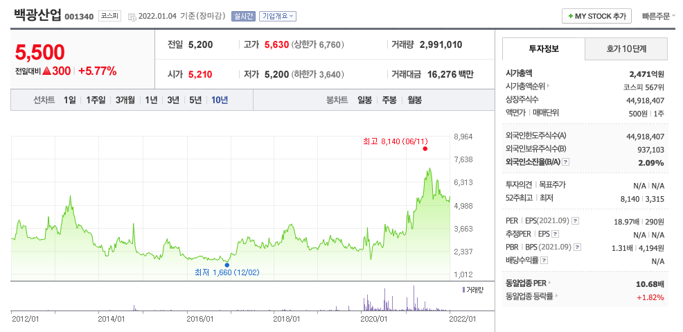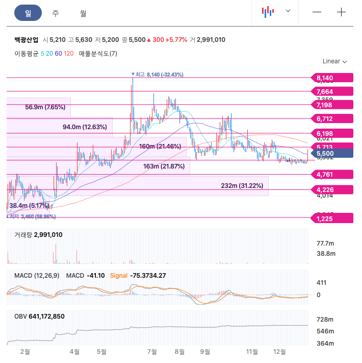 | 백광산업 | 5,500원 | 5657원 | 5613원 | 5609원 |