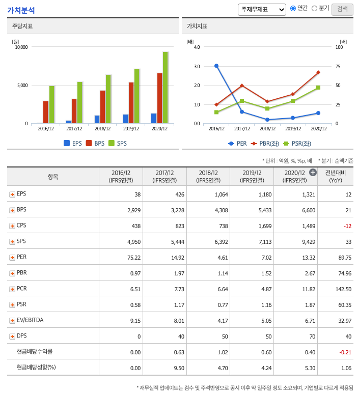 FCF(미래현금흐름) : 2018년 58억원, 2019년 215억원, 2020년 197억원으로 미래현금흐름이 좋습니다. 2021년은 70억원으로 추정됩니다.