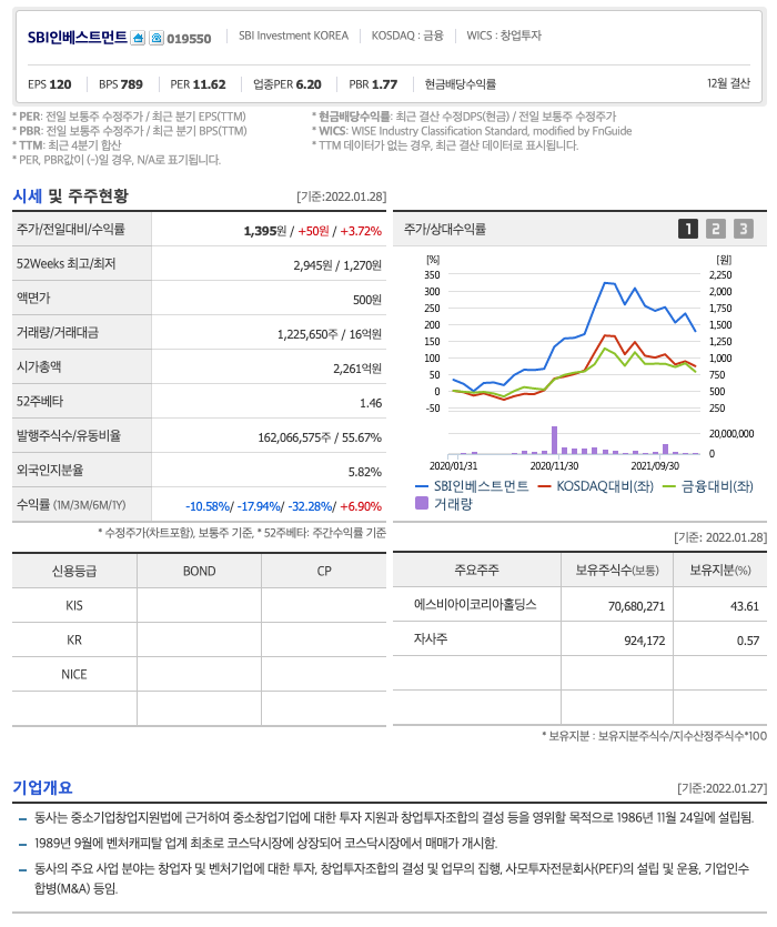 | SBI 인베스트먼트 | 1395원 | 1729원 | 1685원 | 1651원 |