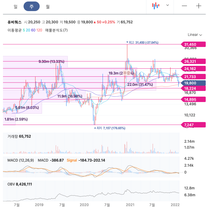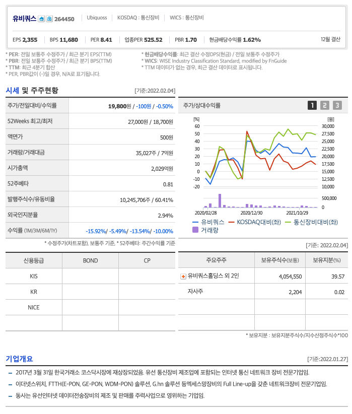 | 유비쿼스 | 19,800원 | 21,929원 | 22,019원 | 22,837원 |