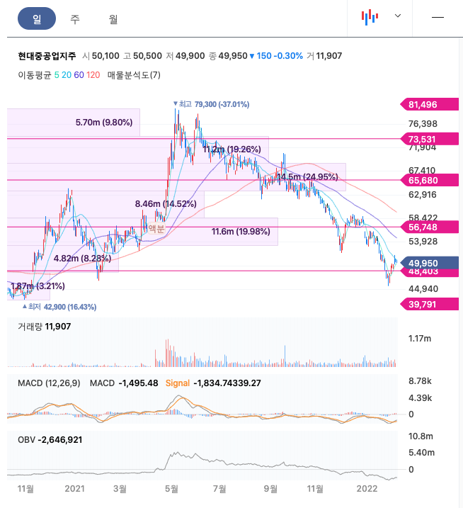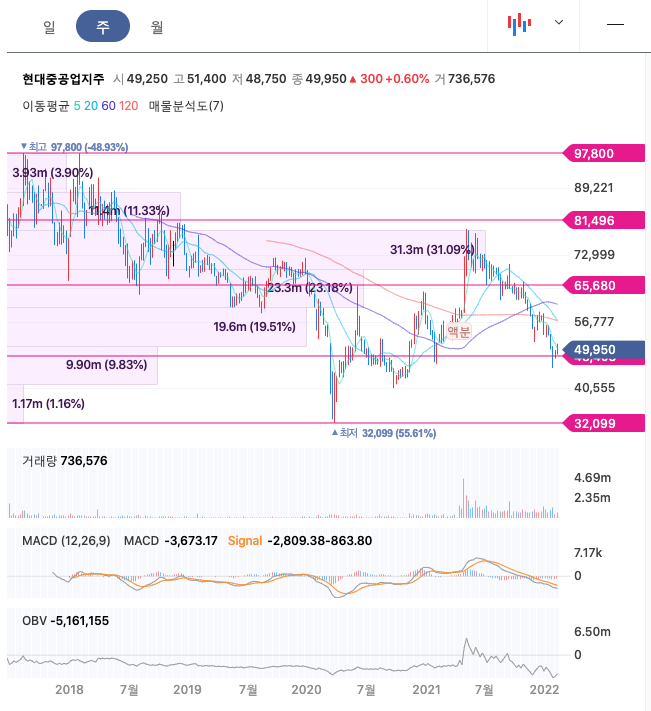 | 현대중공업지주 | 49,950원 | 54,484원 | 53,279원 | 54,946원 |