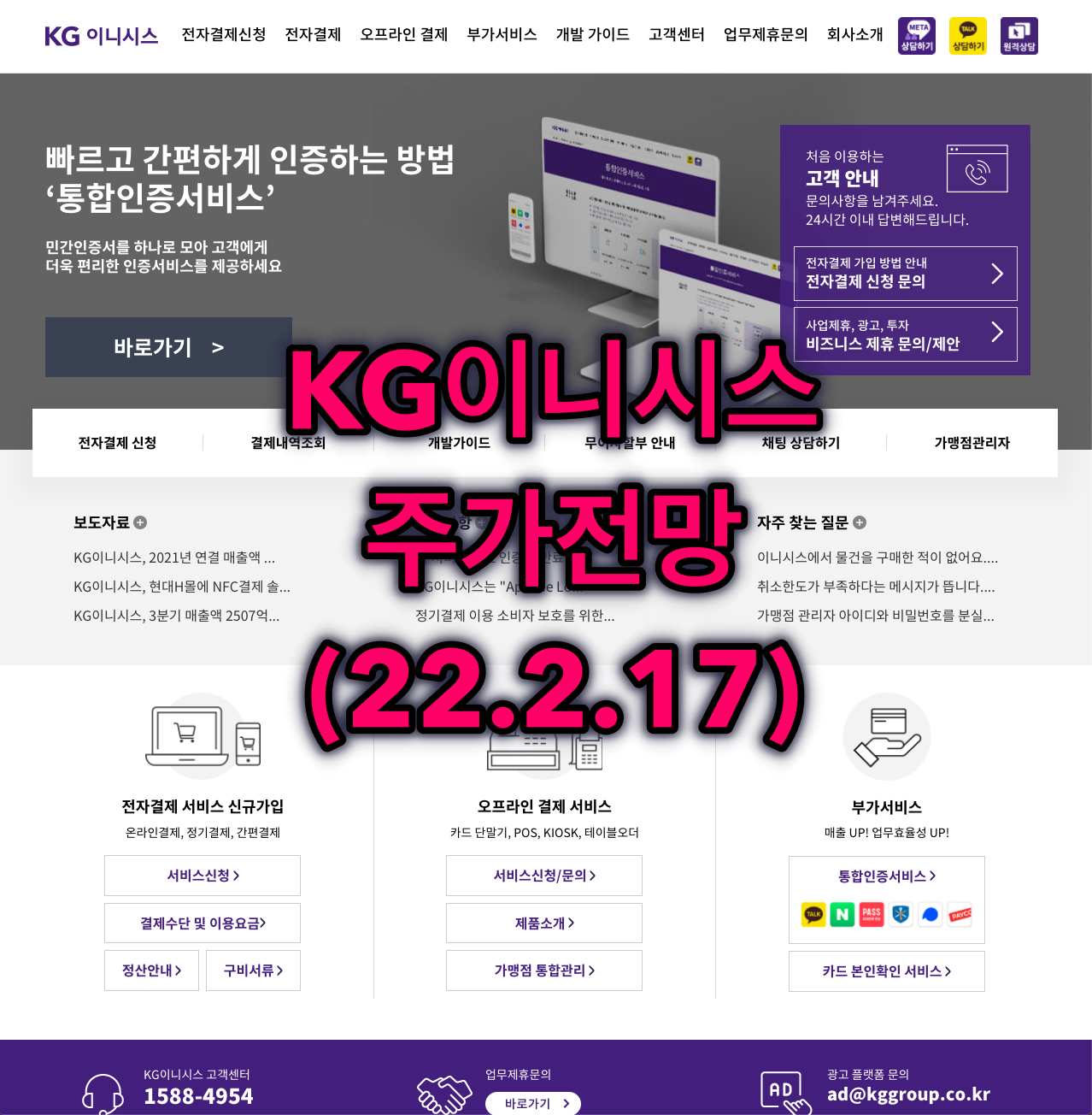 다양한 간편결제 출시에 발맞춰 국내 최다의 간편결제 서비스를 제공 중에 있으며, 비대면 온-오프 통합결제 환경으로 전환에 발맞춰 사용자 및 가맹점 편의성을 개선한 무인화 매장 솔루션을 제공 중에 있으며, 2022년부터 본격적인 사업화 추진 중에 있습니다. 2021년 구독경제 전용 솔루션인 “렌탈페이”서비스를 출시, 사업화 진행 중에 있습니다. 렌탈페이 서비스를 통해, 소비자가 원하는 모든 상품을 구독경제 방식으로 이용할 수 있으며, 판매자는 금융 및 리스크 부담 없이, 렌탈 솔루션을 구축, 적용할 수 있는 장점이 있어 사업확대에 기여할 것으로 예상됩니다.