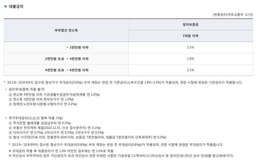 상품내용의 변경에 관한 사항 <변경내용> □ 부부합산 순자산가액 기준 금액 변경 변경전 : (2020년 기준, 2억 9천 2백만원) 변경후 : (2021년 기준, 3억 2천 5백만원) □ 부동산 전자계약 우대기간