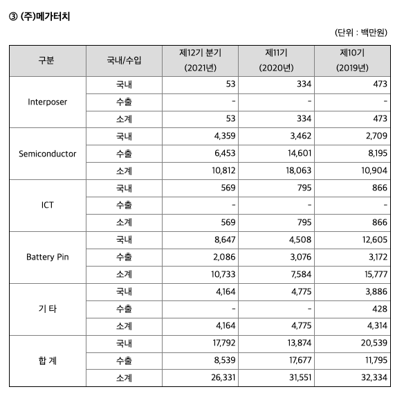 당사는 반도체 소자검사에 사용되는 범용/특수Probe pin과 전기자동차, 헨드폰등에 널리 사용되는2차 베터리의 고전류 충방전 검사에 사용되는probe pin의 제조/판매하는 사업을 영위하고 있습니다.