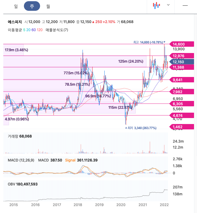 | 에스피지 | 12,050원 | 12,442원 | 12,124원 | 11,815원 |