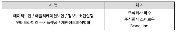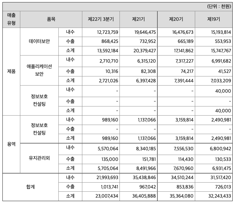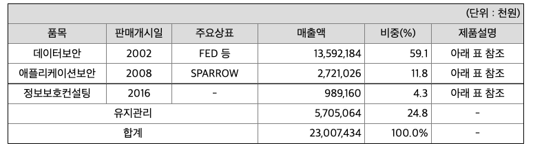 당사는 각 사업분야별로 해당분야의 전 제품 라인업을 갖추어 고객사 상황에 맞는 최적의 솔루션을 구축하여 제공함으로써 사업적인 시너지가 나도록 하고 있습니다. DRM은 기업의 문서유통 전환경에서 지속적인 보안이 적용되도록 제품을 구성하여 기업들이 토탈솔루션을 구입하도록 하고 있으며, 개인정보보호 시장의 전체라인업을 갖추어 파일단위 암호화사업까지 영위하고 있습니다. 애플리케이션보안 시장도 기존 품질분야 제품에서 개발보안 분야까지 제품을 개발하여 각각 해당분야의 토탈솔루션을 제공하고 있습니다.