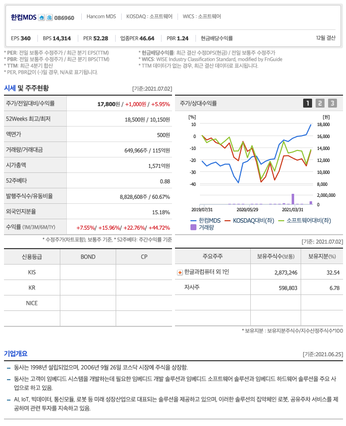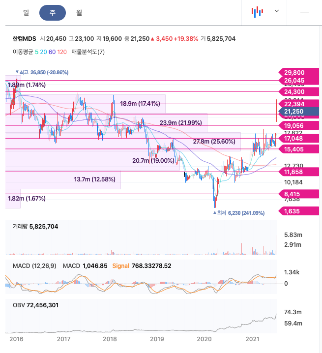 | 한컴MDS | 21,000원 | 16,672원 | 16,579원 | 16,784원 |