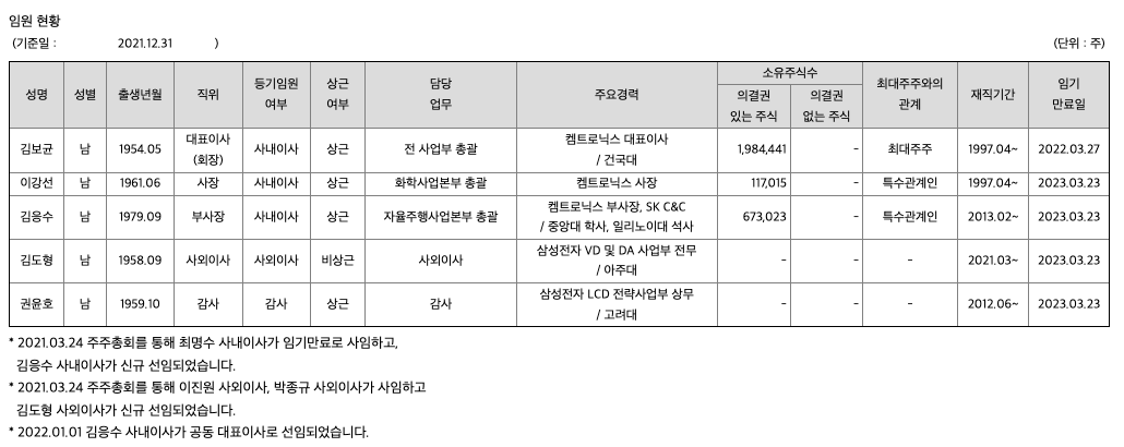 화학사업 부문별로 보면 케미칼 사업부문에서는 페인트 및 도료에 들어가는 공업용케미칼과 반도체 및 디스플레이에 들어가는 전자재료케미칼을 개발, 합성 및 정제하는 전자용 케미칼을 개발, 제조 및 판매하고 있습니다.