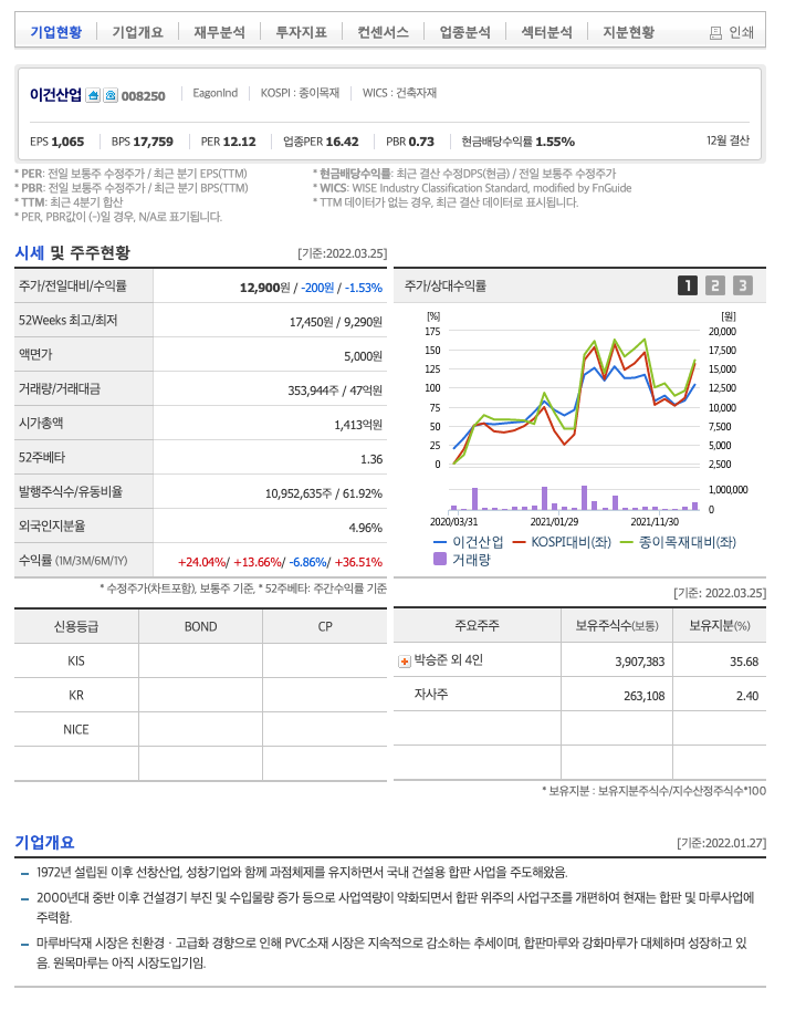 | 이건산업 | 12,900원 | 11,790원 | 11,547원 | 11,166원 |