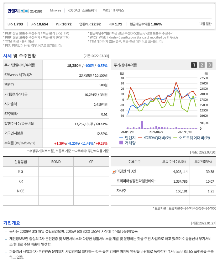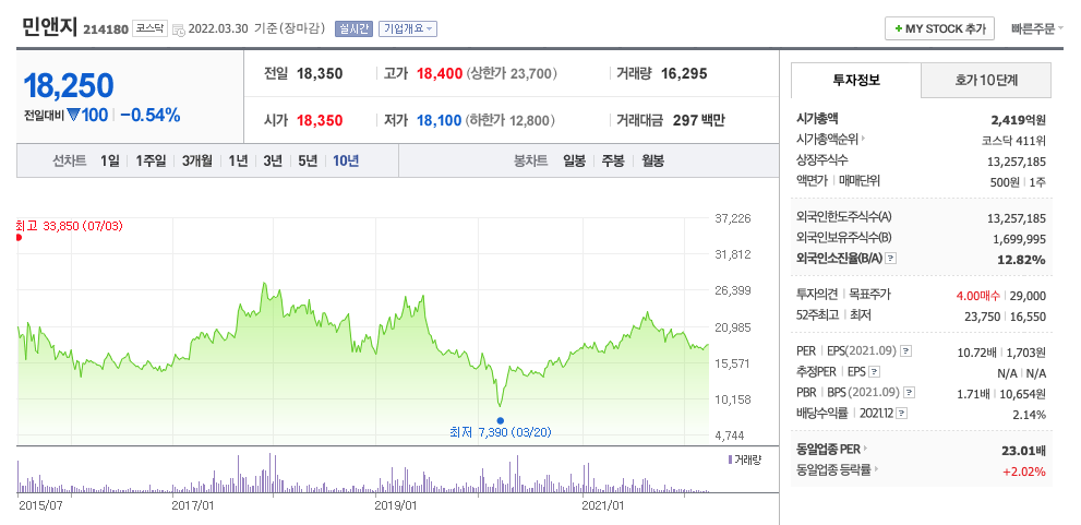 | 민앤지 | 18,250원 | 18,479원 | 18,309원 | 18,108원 |