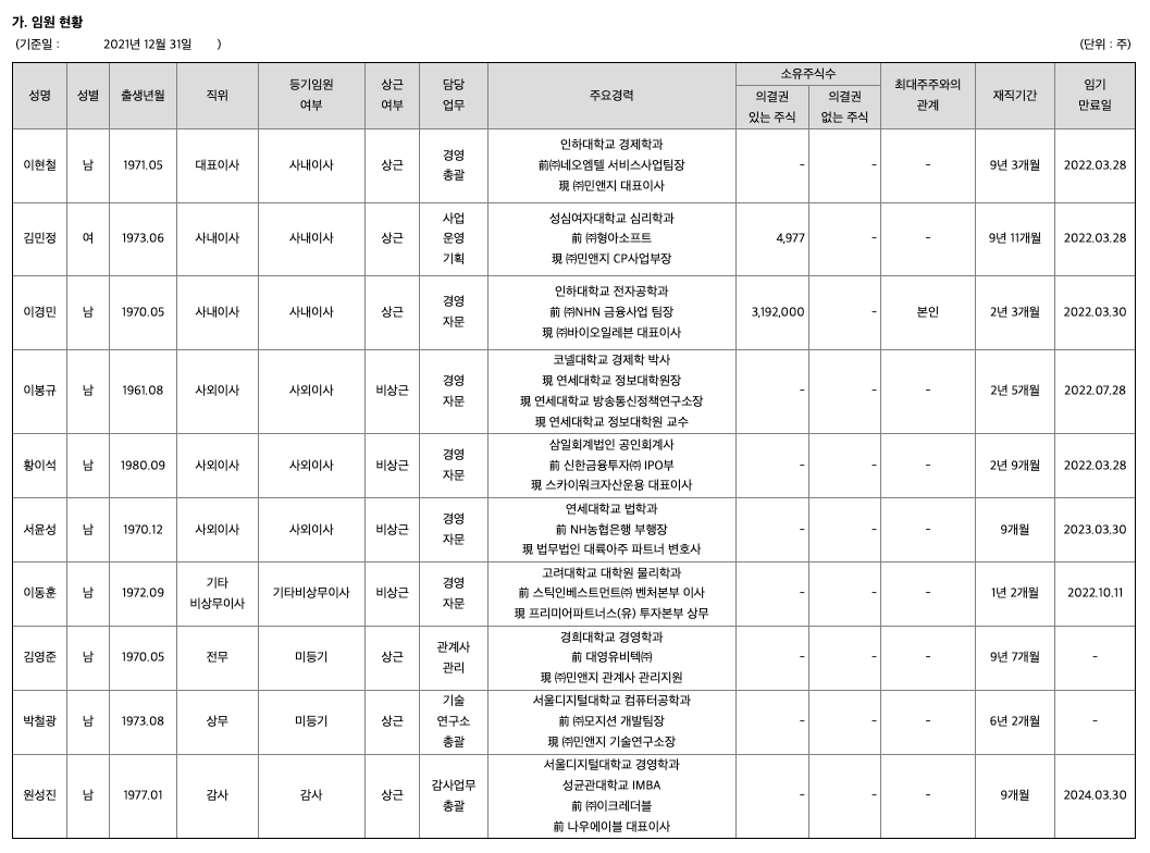 [지배회사의 현황 : 민앤지]