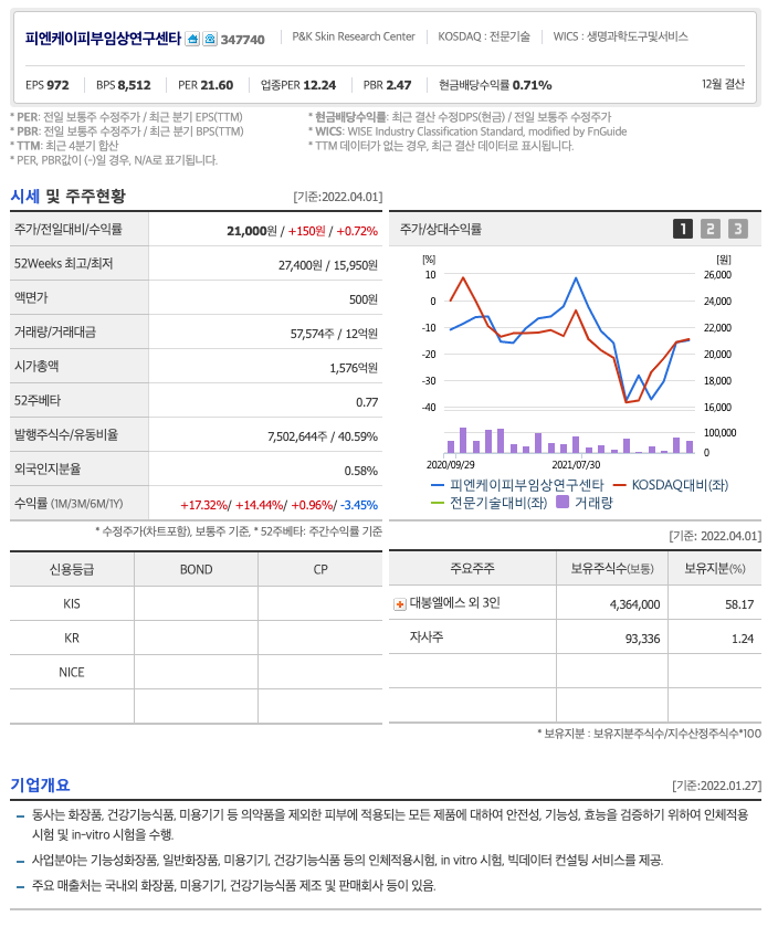 | 피엔케이피부임상연구센타 | 21,000원 | 19,072원 | 19,019원 | 19,677원 |