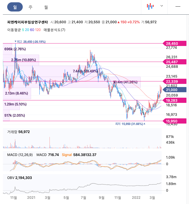 피엔케이피부임상연구센타의 주가는 20년 10월 최고 28,450원을 찍고 조정을 받았습니다.