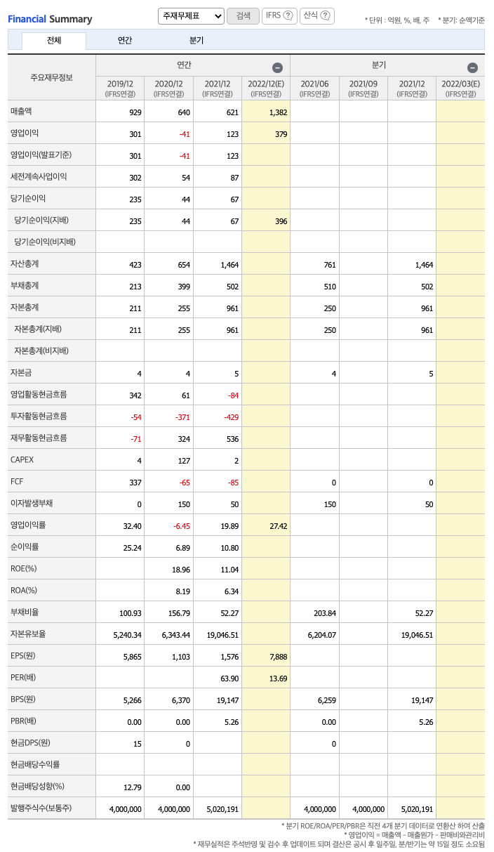 원준의 2022년 영업이익은 379억원으로 추정됩니다. 현재(22. 4.6 ) 시가총액은 5537억원으로 멀티플 14입니다.