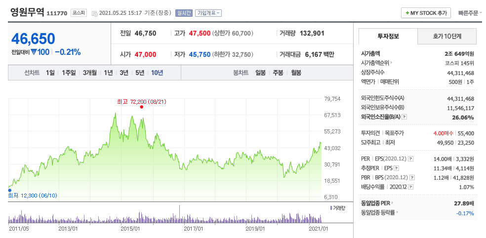 | 영원무역 | 46800원 | 42226원 | 41934원 | 42894원 |