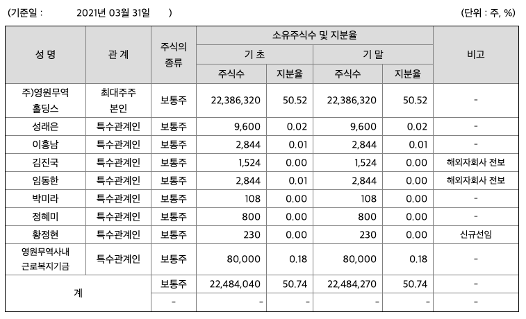 영원무역 목차 |