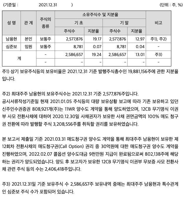 투자활동 현금흐름 : 2018년 71억원, 2019년 -14억원, 2020년 -280억원, 2021년 -160억원으로 2019년이후 투자활동 현금흐름이 원활합니다.