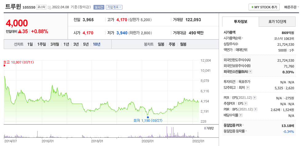 | 트루윈 | 4000원 | 4195원 | 4270원 | 4270원 |