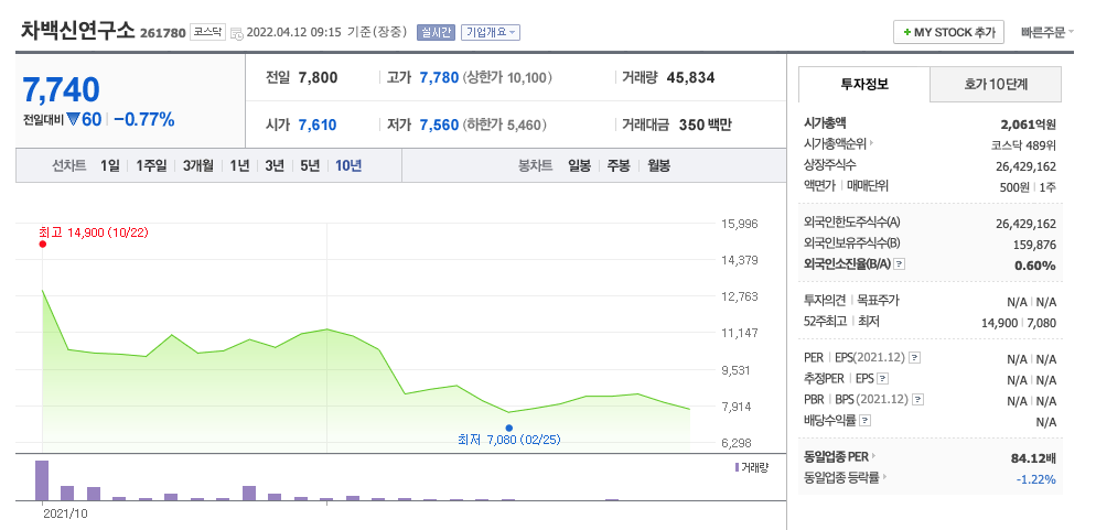 | 차백신연구소 | 7740원 | 9431원 | 8993원 | 9781원 |
