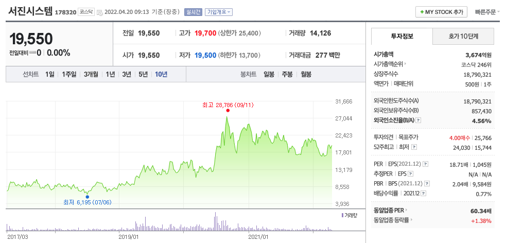 | 서진시스템 | 19600원 | 18411원 | 18299원 | 18417원 |