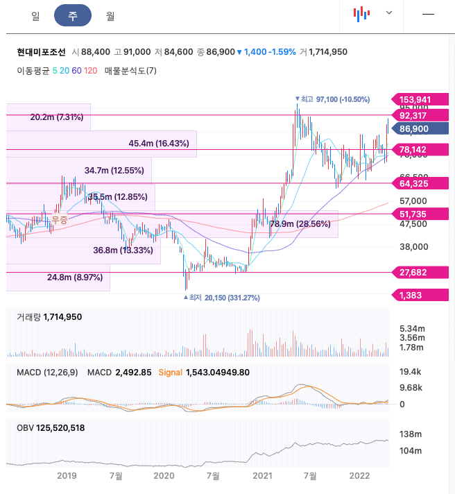 | 현대미포조선 | 86,900원 | 77,533원 | 79,707원 | 79,226원 |