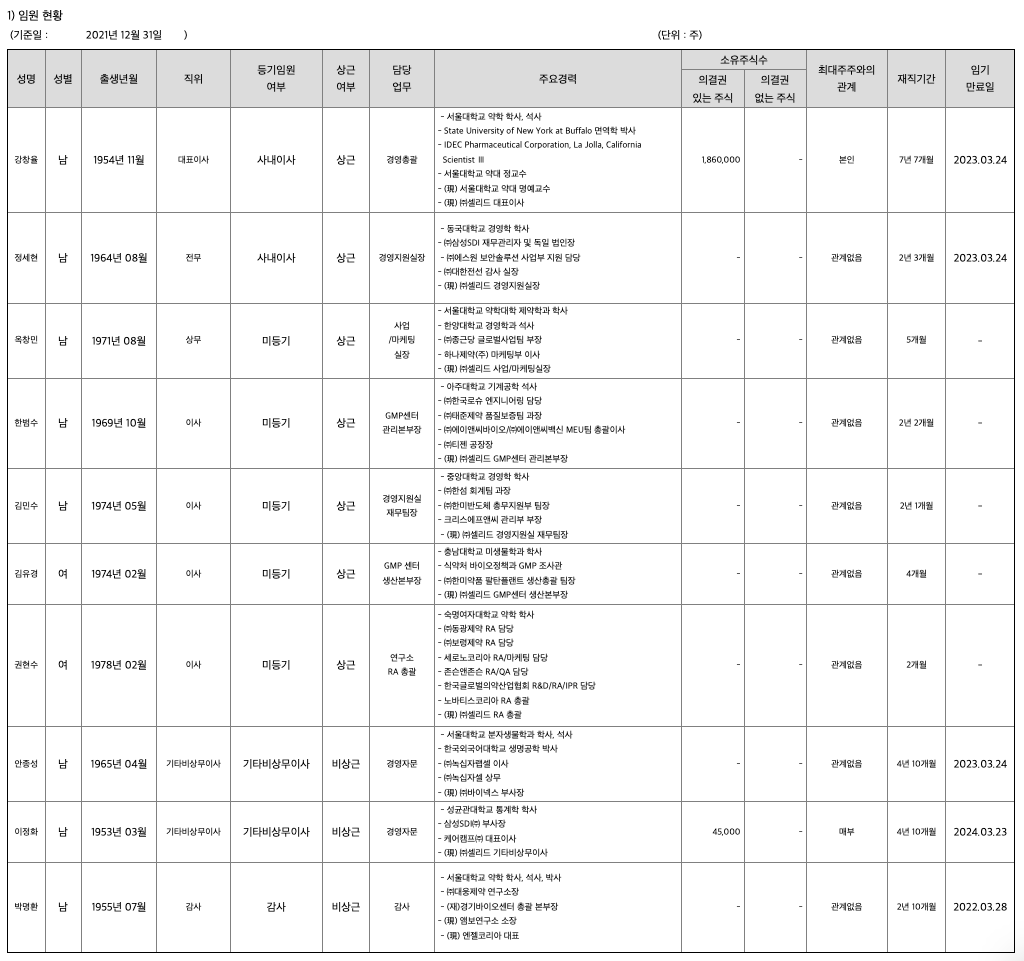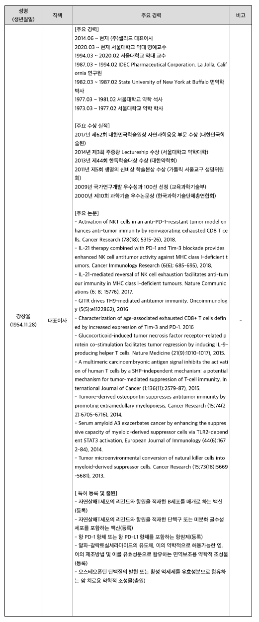당사는 보고서 작성기준일 현재 신약연구개발을 위한 조직을 아래와 같이 구분하여 운영하고 있습니다. “연구소”중 서울대학교 내에 위치한 신약탐색팀, 백신중개연구팀, 암중개연구팀은 항암면역치료백신과 예방백신의 기초연구 전반을 다루며, 성남에 위치한 벡터공정팀, 완제공정팀은 발굴한 파이프라인의 비임상개발과 임상진입, 완제의약품 공정개발, 품질관리를 수행하고 있습니다. 항암면역치료백신 5종의 비임상 및 임상 연구개발을 진행하고 있으며, 코로나 예방백신의 임상 개발을 진행 중입니다.