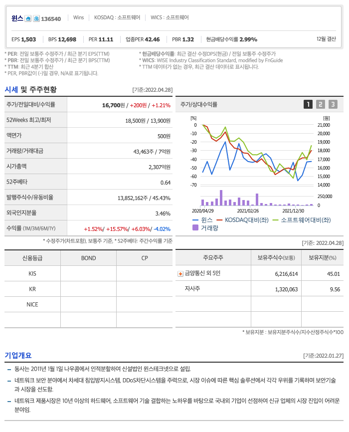 | 윈스 | 17,000원 | 15,973원 | 15,924원 | 16,014원 |