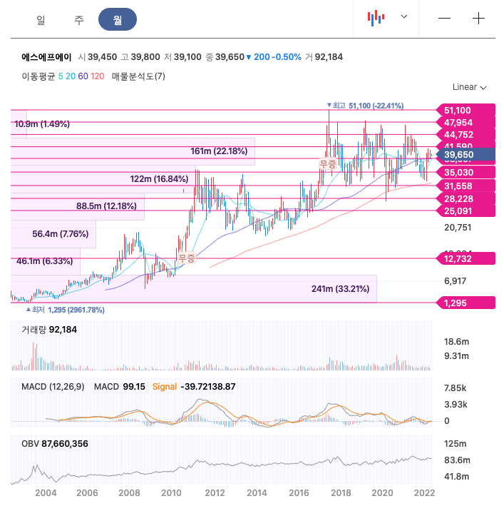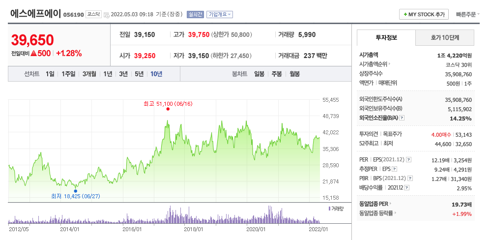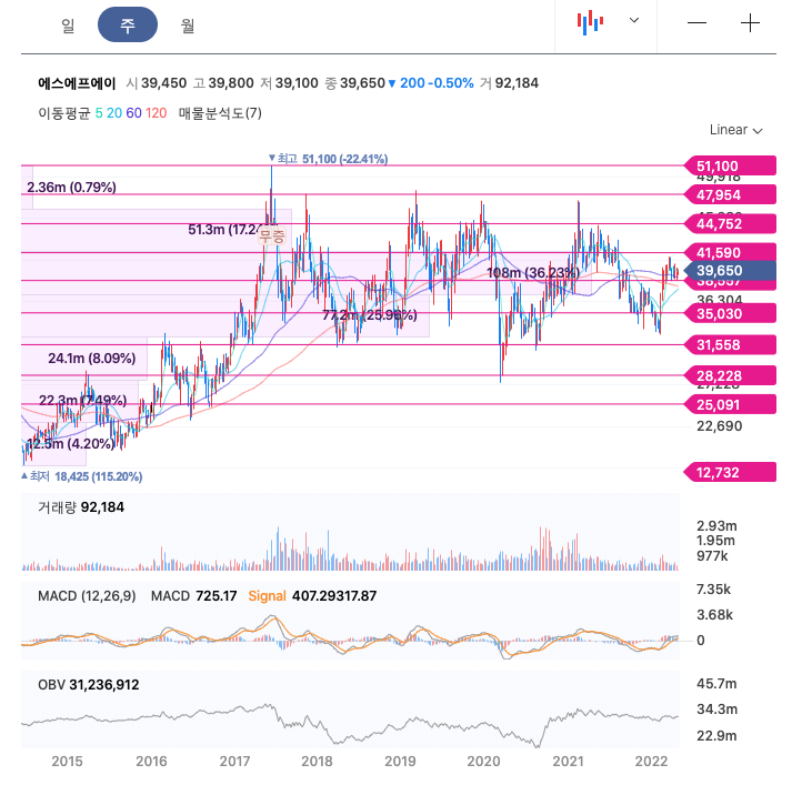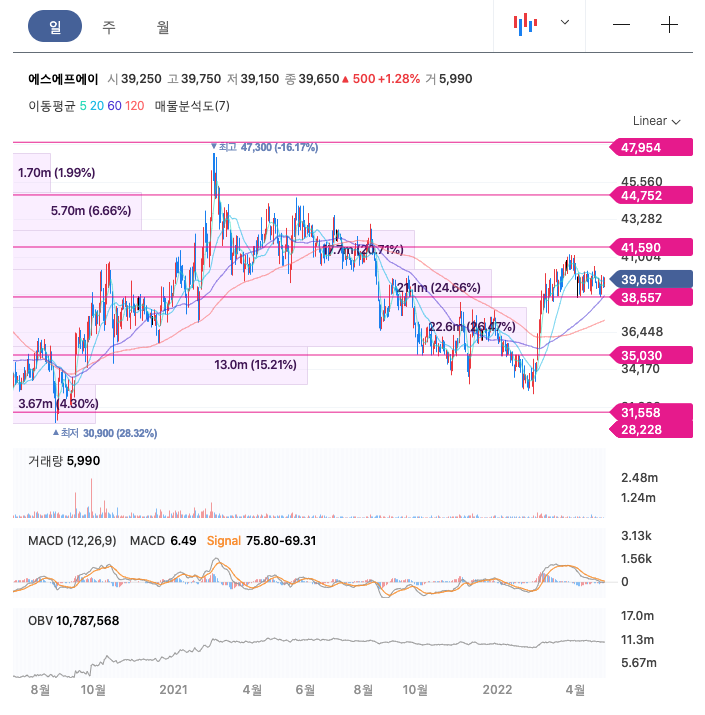 | 에스에프에이 | 39,850원 | 38,263원 | 38,325원 | 38,539원 |