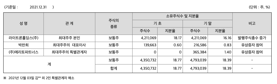 주주에 관한 사항