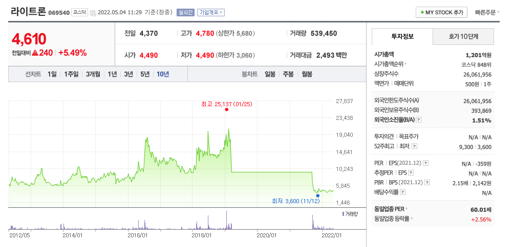 | 라이트론 | 4600원 | 4385원 | 4402원 | 4717원 |