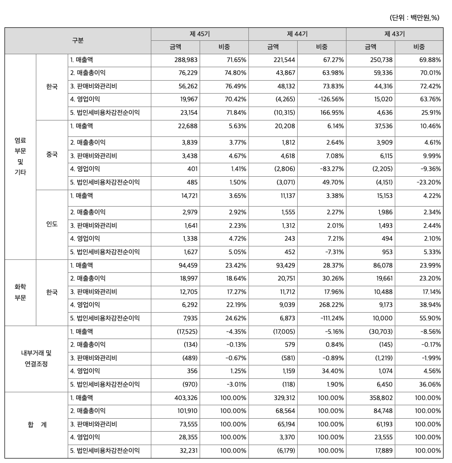 1) 염료부문 사업의 개요 - ㈜경인양행, KSC, KLC