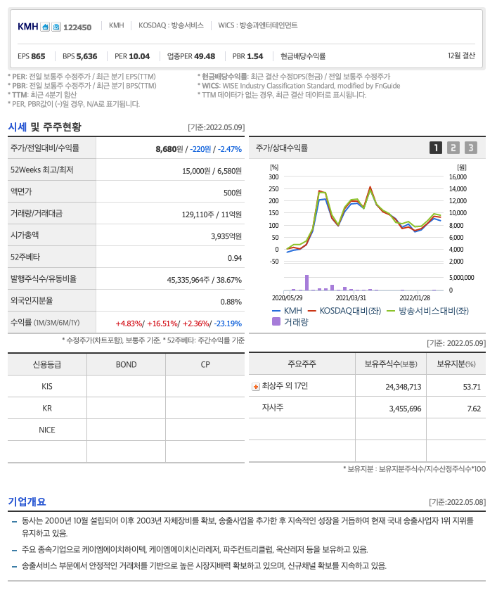 | KMH | 8680원 | 8192원 | 8287원 | 8576원 |