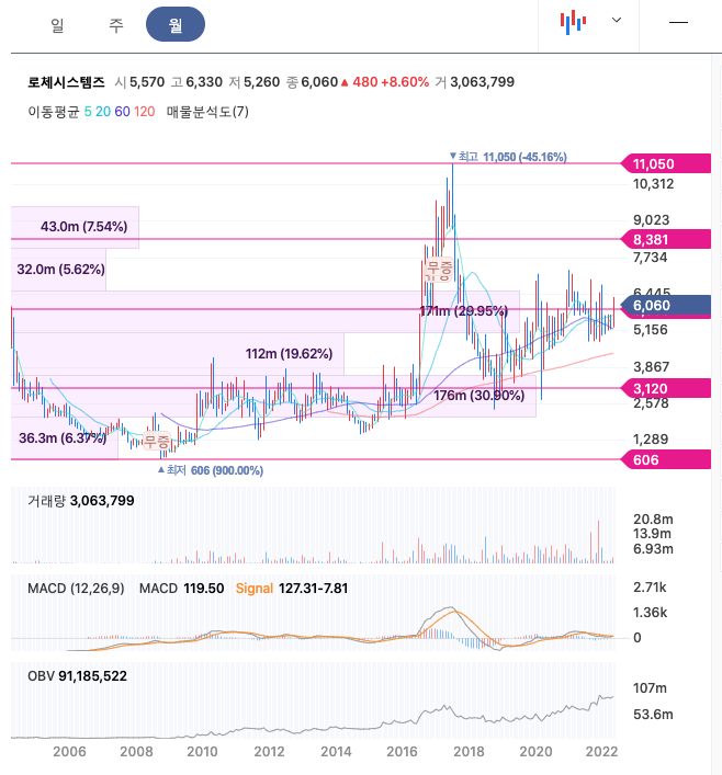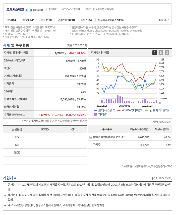 | 로체시스템즈 | 6240원 | 5703원 | 5738원 | 5678원 |