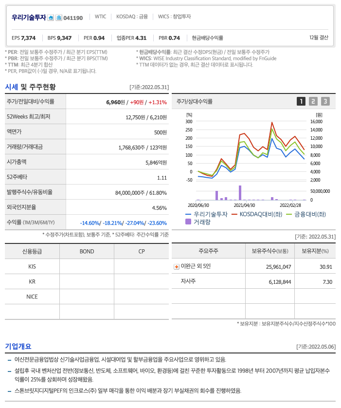 | 우리기술투자 | 6960원 | 8600원 | 8190원 | 8164원 |