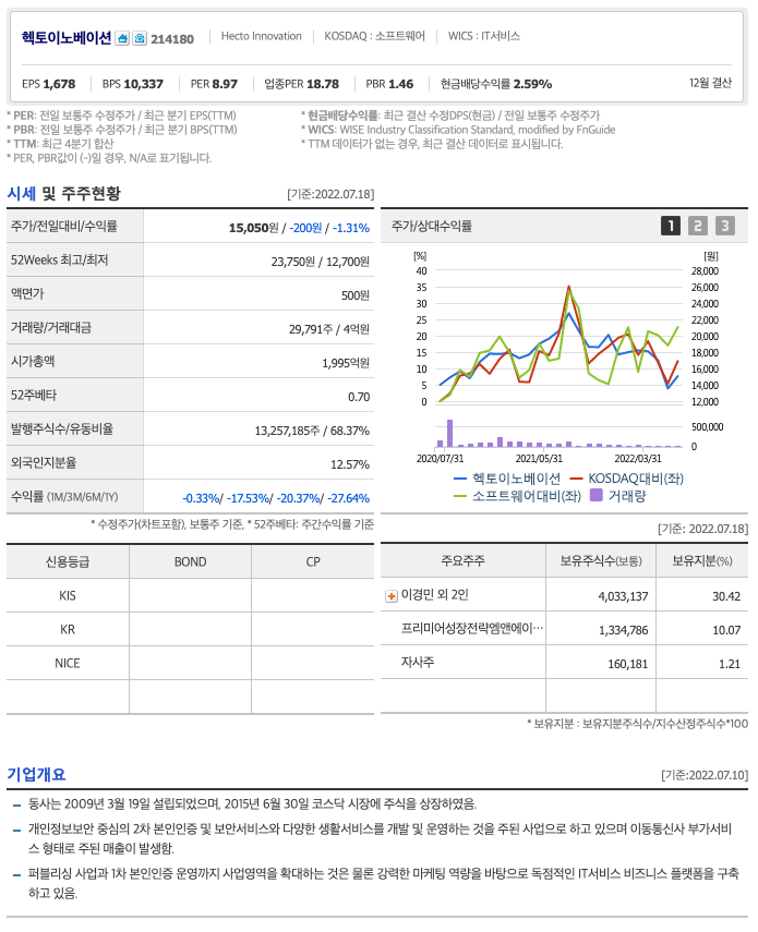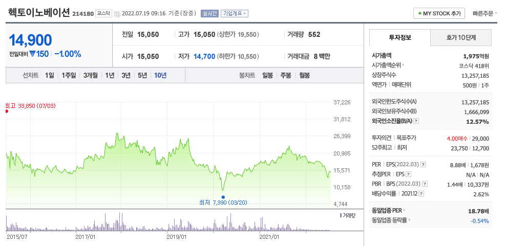 | 헥토이노베이션 | 14850원 | 15,806원 | 15,320원 | 15,872원 |