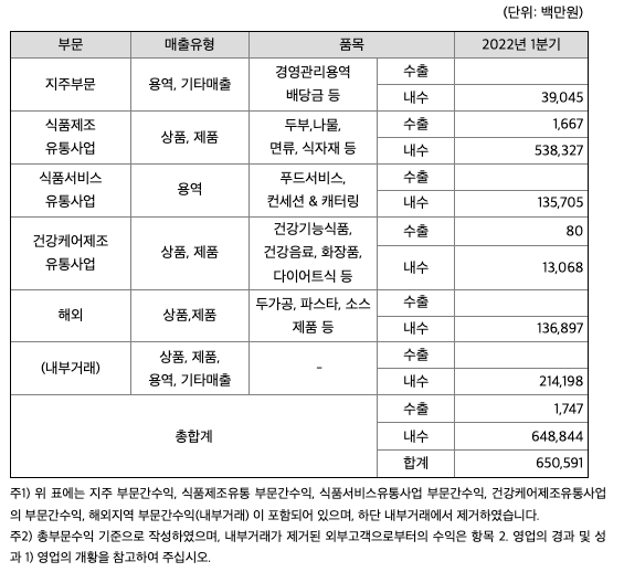 [식품제조유통사업부문]