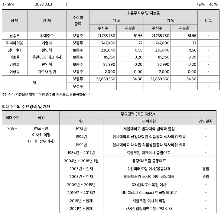 ii) ㈜푸드머스는 국내시장에서 건강지향적 PB(Private Brand) 신선식품/음료군 제품을 제조하여 관공서 등에 납품함과 동시에 종합식자재를 공급하는 사업입니다. 20년 부터 풀무원식품㈜과 ㈜푸드머스 2개 사업이 운영효율 개선과 시너지를 낼 수 있도록 통합운영 하고 있습니다.